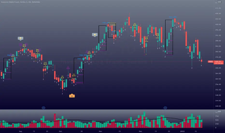 This indicator is an all-in-one "The Strat" script. This script displays the following: