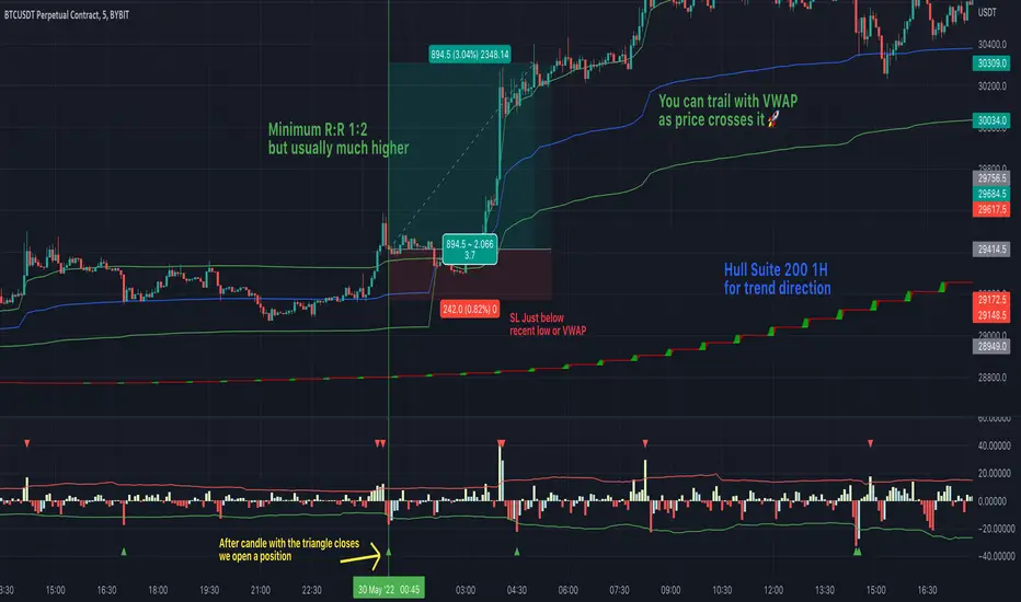 Easy 5 min scalping strategy with alerts. Just follow text indications on the chart above.