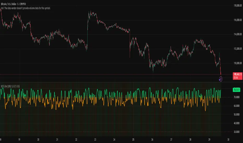 The SCE Lite measures when markets shift from chaotic noise into coherent, tradable phases. It blends entropy (Shannon + Tsallis), WCTφ stability, and resonance into a single clarity score.