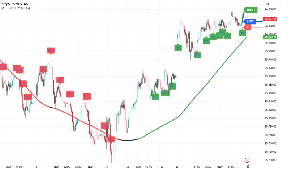MTH Trend Finder is an invite-only, advanced market analysis indicator developed by MarketToolHub for traders who want a complete intraday & scalping setup on their charts.
