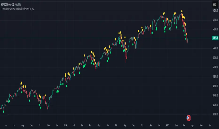 Green circles appear below bars for bullish volume spikes (when price closed higher)