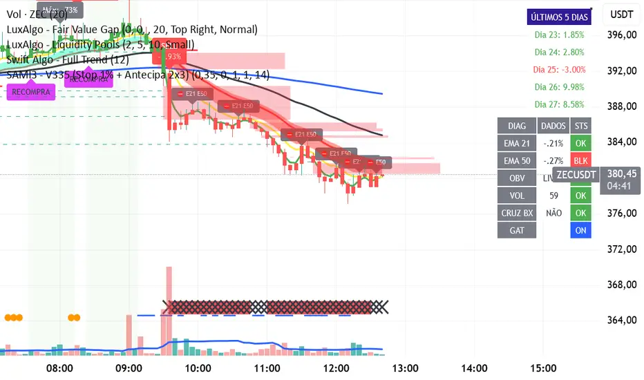 This cloud shows the EMAs; when it's a sell, it turns red, and when it's a buy, it turns green, showing buy and sell signals. Be careful, as the script is just an indicator; it will cause losses if used for automated trading."