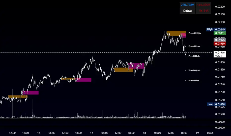 - Automatically draws previous day’s High, Low, Open and previous 4‑hour High/Low.