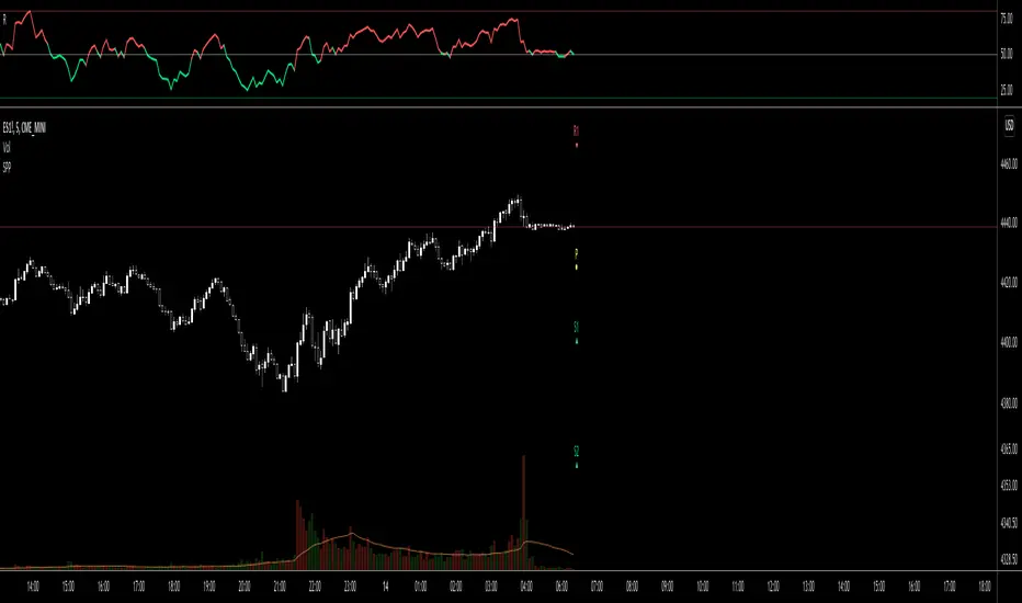 I don't like many indicator lines crossing my screen everywhere, just as some Pivot Point indicators did. So I wrote this script to keep my screen as clean/neat as possible.