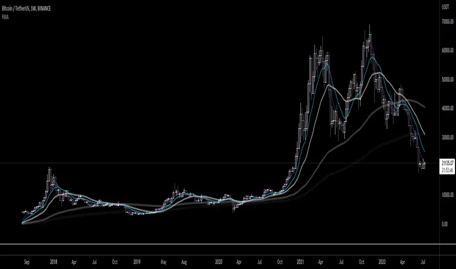 Fibonacci moving averages are a more reactive form of EMA utilizing the Fibonacci sequence (1 2 3 5 8 13 ... etc) to weight values.