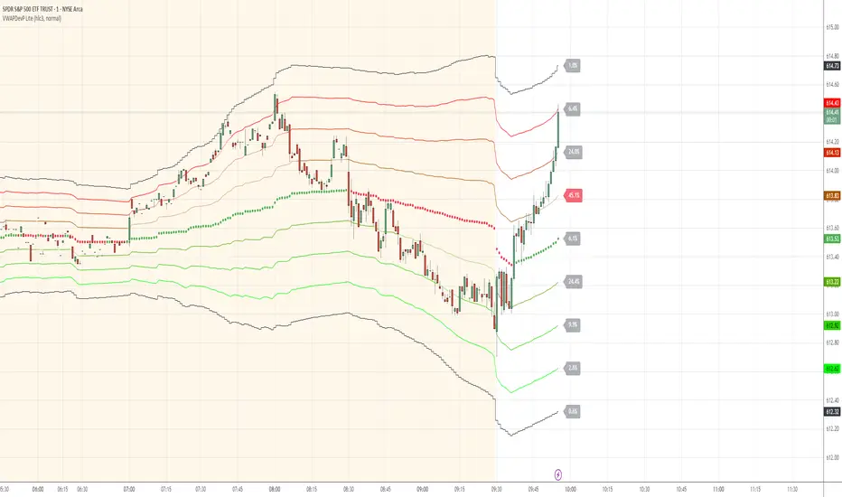 This indicator is a powerful tool for intraday traders, designed to identify high-probability areas of support and resistance. It plots the Volume-Weighted Average Price (VWAP) as a central "value" line and then draws statistically-based deviation channels around it.