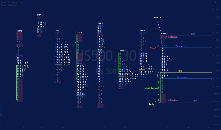 - The current price (TPO Profile is often used isolated without any candlesticks on it)