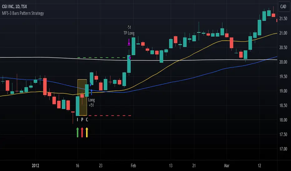 Detects an Ignite Candle followed by a Pullback Candle followed by a Confirmation Candle.A Box will be drawn around the setup and three arrows will identify I, P, C (Ignite, Pullback, Confirmation) the setup.