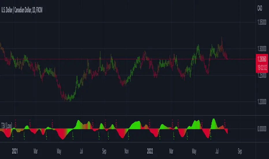 T3 Velocity [Loxx] is a simple velocity indicator using T3 moving average that uses gradient colors to better identify trends.