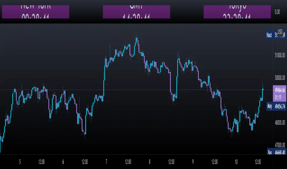 The script can be placed on the chart and in this case it is possible to change the position of each clock