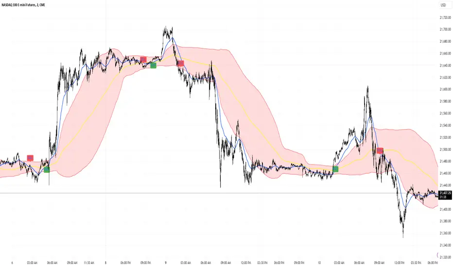 Volatility Normalization: The bands, constructed from standard deviations, provide a sense of whether the price and the 50 EMA are operating within a statistically “normal” range. If the EMA crosses the weighted average within this zone, it signals a potential trend initiation or meaningful shift, as opposed to a random price spike outside normal volatility boundaries.