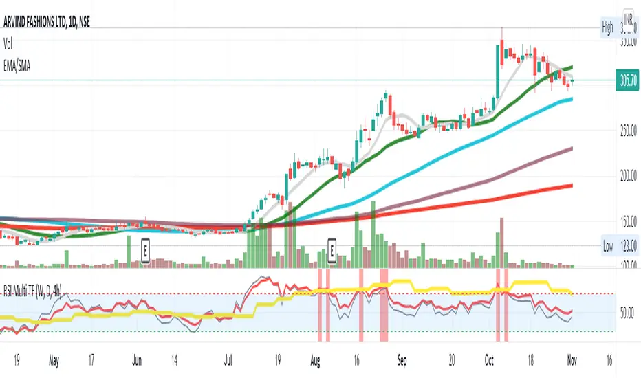 Plots 3 RSI (Weekly, Daily, 4h) at the same time, regardless of the Chart Timeframe.