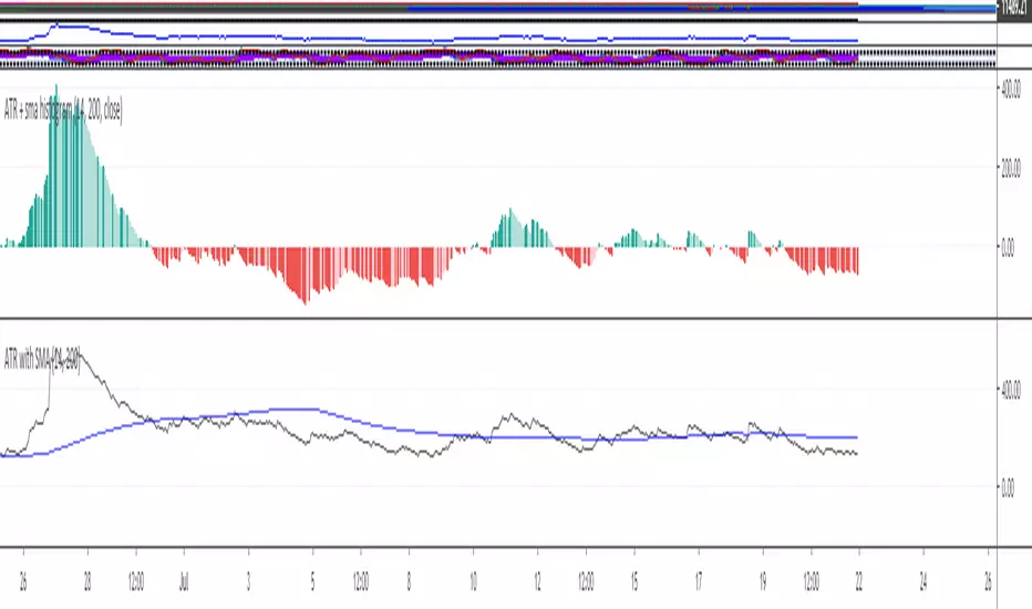 ATR shows volatility. SMA of ATR measures the average volatility over a chosen look-back period (default 200).