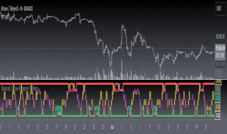 b]OVERVIEW The [blackcat] L1 Close Histogram Oscillator tracks price momentum via dual counters derived from closing price trends, generating actionable signals across distinct risk/reward zones. This non-overlay indicator combines histogram analysis with persistent entry validation.