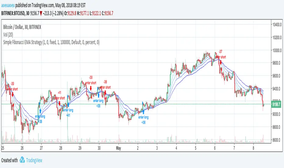 This script gives a buy signal when the 21 EMA crosses above the 55 EMA and a sell signal when the 55 EMA crosses below the 21 EMA. This strategy works well for cryptocurrencies at all time frames. However, it does not work for stocks or forex. Sometimes, the simple strategies are the best strategies, especially in markets that have not been dominated by institutions.