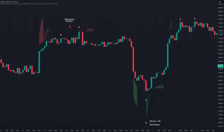 RSS3 is a quantitative reversal detection system that combines volatility pressure analysis with directional momentum exhaustion to produce a unified reversal strength score from -1 (extreme bullish) to +1 (extreme bearish).