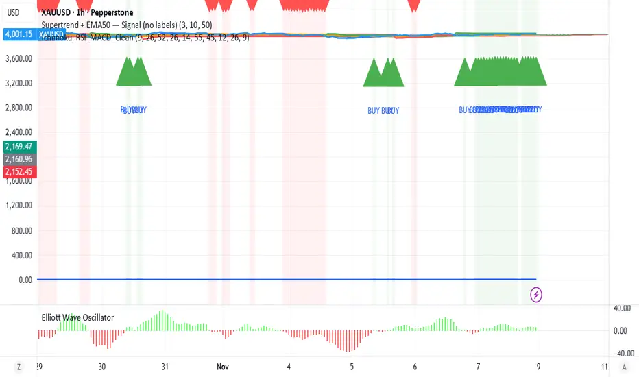 Ichimoku + RSI + MACD. Combined indicators with BUY and SELL alerts.