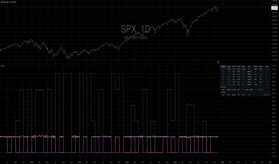 In 2007, Mebane Faber published research that challenged the conventional wisdom of buy-and-hold investing. His paper, titled "A Quantitative Approach to Tactical Asset Allocation" and published in the Journal of Wealth Management, demonstrated that a simple timing mechanism could reduce portfolio volatility and drawdowns while maintaining competitive returns (Faber, 2007). This indicator implements his Global Tactical Asset Allocation strategy, known as GTAA5, following the original methodology.
