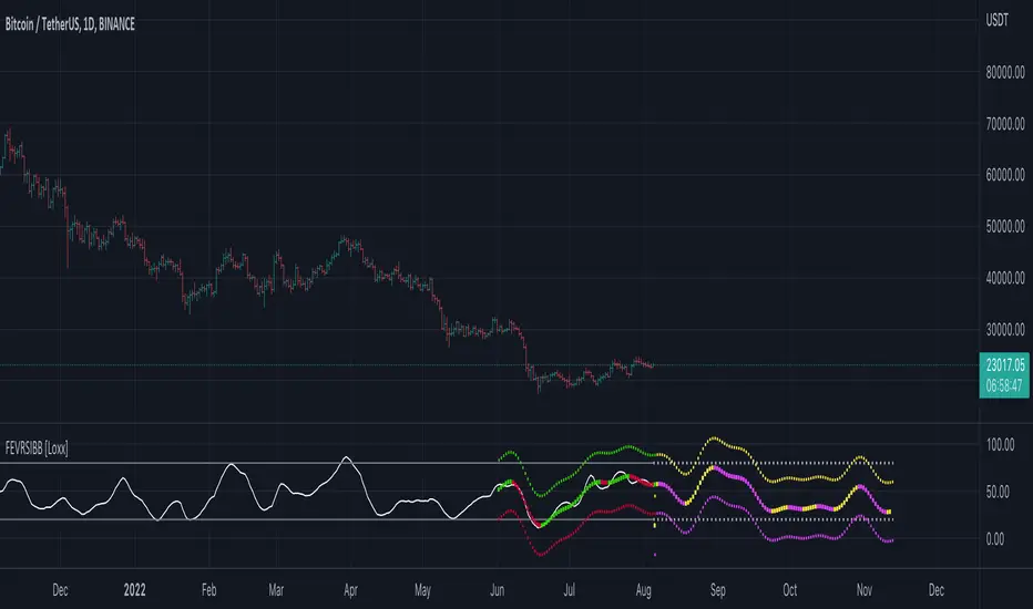 Fourier Extrapolator of Variety RSI w/ Bollinger Bands [Loxx] is an RSI indicator that shows the original RSI, the Fourier Extrapolation of RSI in the past, and then the projection of the Fourier Extrapolated RSI for the future. This indicator has 8 different types of RSI including a new type of RSI called T3 RSI. The purpose of this indicator is to demonstrate the Fourier Extrapolation method used to model past data and to predict future price movements. This indicator will repaint. If you wish to use this for trading, then make sure to take a screenshot of the indicator when you enter the trade to save your analysis. This is the first of a series of forecasting indicators that can be used in trading. Due to how this indicator draws on the screen, you must choose values of npast and nfut that are equal to or less than 200. this is due to restrictions by TradingView and Pine Script in only allowing 500 lines on the screen at a time. Enjoy!