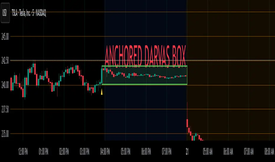 The anchored version preserves Darvas’s logic but pins the entire sequence to a user-chosen candle: perfect for analysing a market open, an earnings release, FOMC minute, or any other catalytic bar.