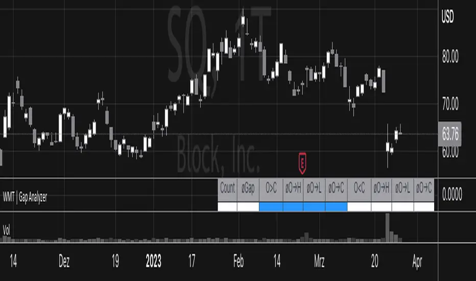 Gap Analyzer [WMT] - Data for Gap Up and Gap Down