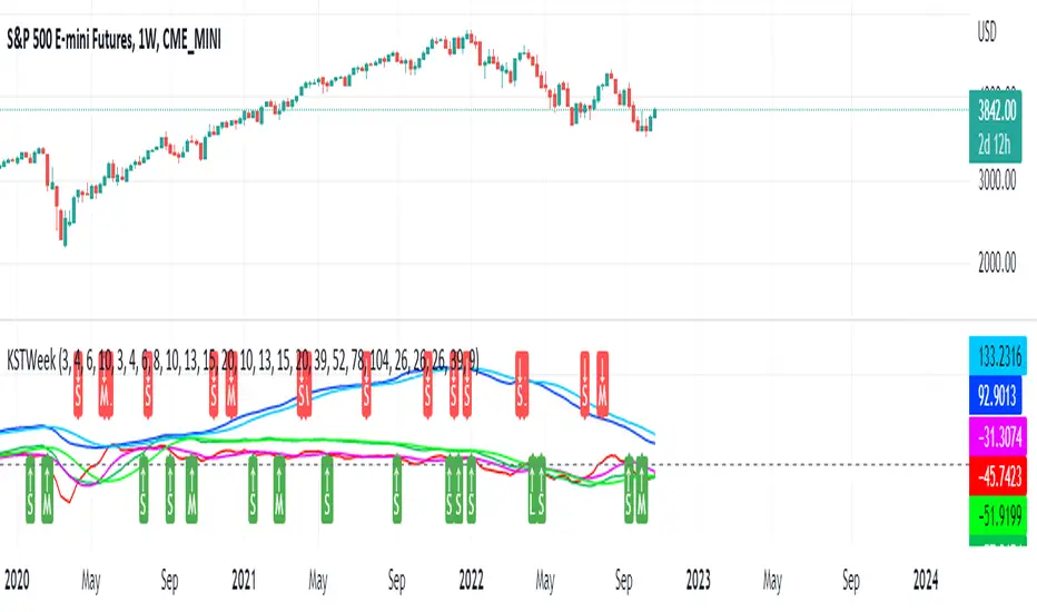 Developed by Martin Pring, Know Sure Thing (KST) is a momentum oscillator based on the smoothed rate-of-change for four different timeframes.