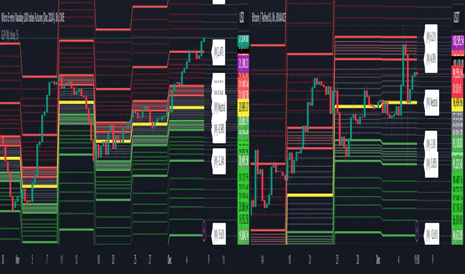 - Projects horizontal lines to the subsequent selected indicator interval for every calculated price level.