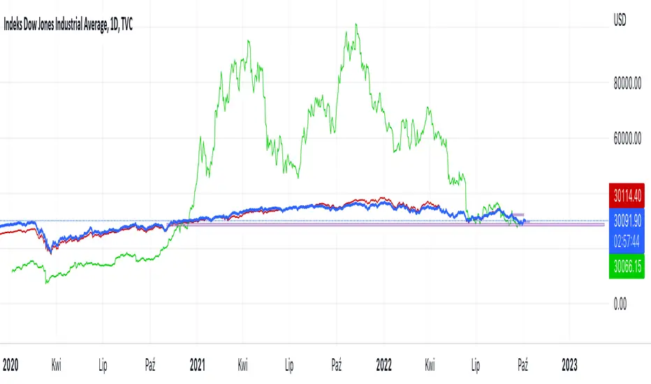 Script shows relations between DJI downJones SPX and BTC:USD.
