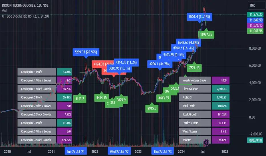 - It now shows Wins/Losses, Stock Growth % along with indicator's Profit % for the checkpoint dates