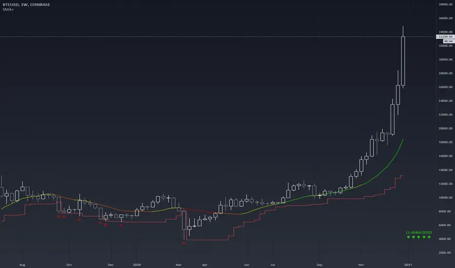 The 'SMA + Trend Strength + Trailing Stop Loss' indicator was designed for swing trading long positions over the course of days/weeks. The benefit of the indicator is to identify areas where the market of a given asset is showing signs of a strong uptrend, divergences, and fear. A 13-bar simple moving average is color coded to four colors based on 5 given conditions at a time, which are represented as a trend meter on the bottom right of the screen. A trailing stop loss indicator is included to secure your profits or limit your loss in case the market reverses on you unexpected. Please use this indicator responsibly with proper risk management, and never rely on the indicator by itself for buy and sell signals.