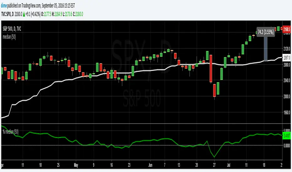 This indicator shows the percentage amount the price is above or below the moving median value of the period.