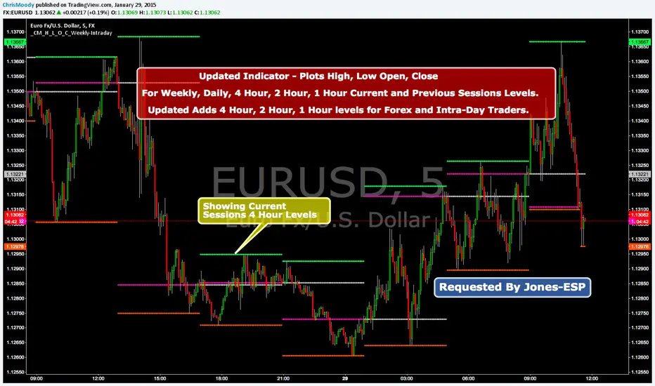For Weekly, Daily, 4 Hour, 2 Hour, 1 Hour Current and Previous Sessions Levels.