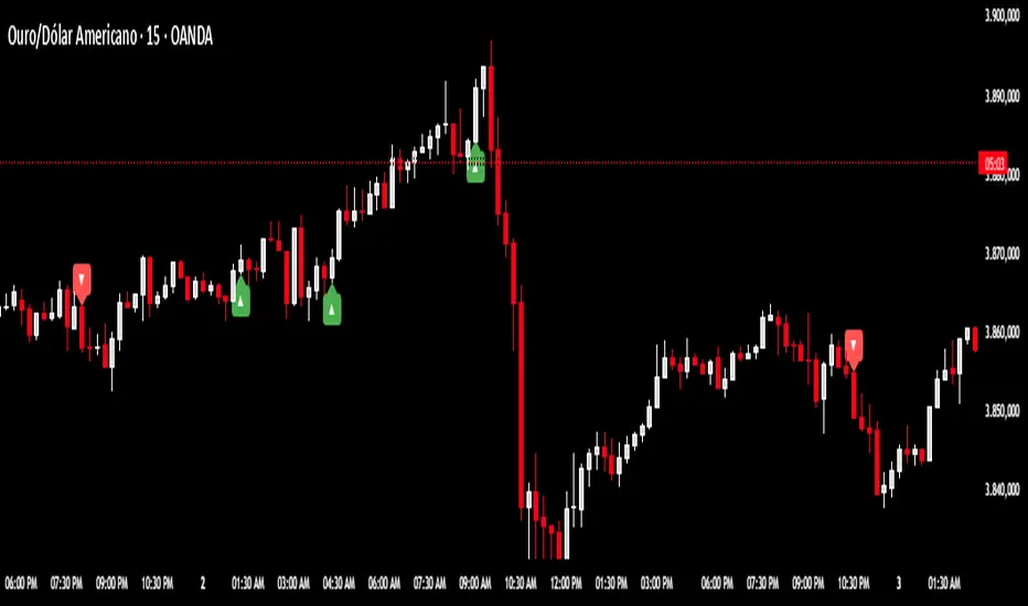 The Didi Index with Full Validation is a technical indicator developed for the TradingView platform, based on the concept of the Didi Index, created by Odir Aguiar (Didi). It uses the relationship between three exponential moving averages (EMAs) of different periods to identify trend reversal or continuation points, known as "needle points." To increase signal reliability, the indicator incorporates validations from four widely used technical indicators: MACD, TRIX, DMI/ADX, and Stochastic. Buy and sell signals are displayed only when all validation conditions are met, ensuring greater accuracy.
