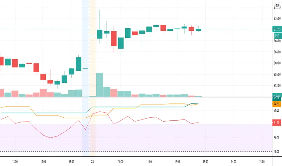 15min, hourly and daily RSIs are displayed on 15 mins or hourly charts, often used for Intraday trading,