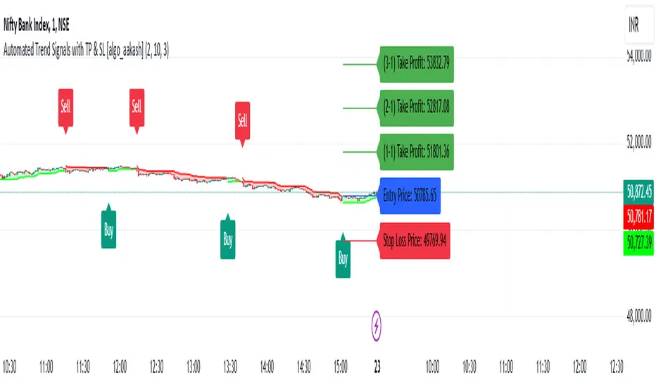 This TradingView indicator is designed to simplify your trading by automatically generating trend-following signals and managing risk with built-in take-profit (TP) and stop-loss (SL) levels.