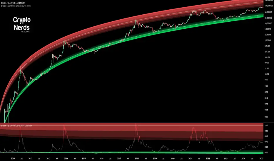 By transforming the original logarithmic growth curve into an oscillator, this version provides a normalized view of price movements within a fixed range, making it easier to identify overbought and oversold conditions.