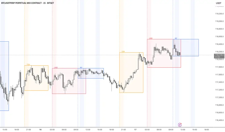It is designed to help traders quickly interpret market context, liquidity zones, and session-based price behavior.