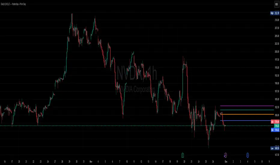 Daily O/H/L/C — Yesterday + Prior Day is a precision line-mapping tool that displays the most important higher-timeframe reference levels directly on your intraday chart.