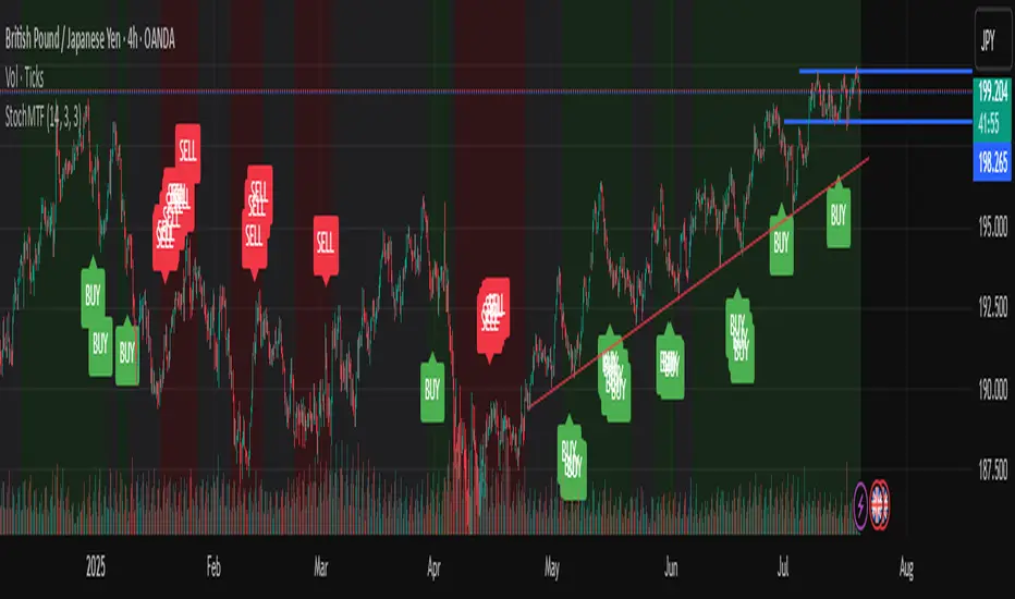 This script is a multi-timeframe Stochastic trend filter designed to help traders identify reliable BUY/SELL signals based on both momentum and higher-timeframe trend context.