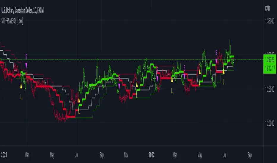 STD-Filterd, R-squared Adaptive T3 w/ Dynamic Zones [Loxx] is a standard deviation filtered R-squared Adaptive T3 moving average with dynamic zones.