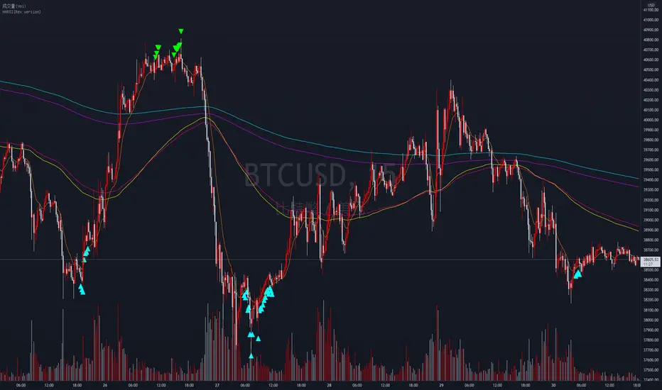 一號線的位置出現了Heikin Ashi RSI Oscillator 多方進場訊號但是價格還是持續震盪