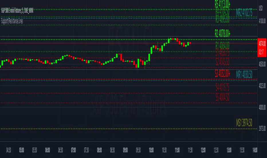 - Enter up to 6 support and 6 resistance lines each; any with value of 0 will be hidden