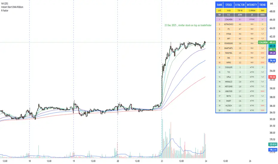 R Factor (relative factor) is a custom logic based 'momentum ranking' parameter, which measures intensity of intraday momentum and volatility. This parameter compared today's activity from last 20 days activity and ranks the stocks according to the intensity of the momentum.