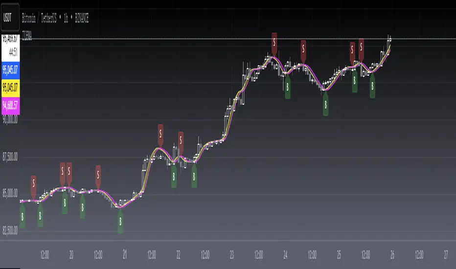 OVERVIEWThe [blackcat] L2 Zero Lag Hull Moving Average (ZLHMA) is an advanced moving average designed to minimize lag and provide more timely signals compared to traditional moving averages. This indicator combines the benefits of Hull Moving Averages (HMAs) with additional smoothing techniques to enhance accuracy and responsiveness. It plots the ZLHMA line along with trigger lines and labels for clear buy and sell signals 📊✅.