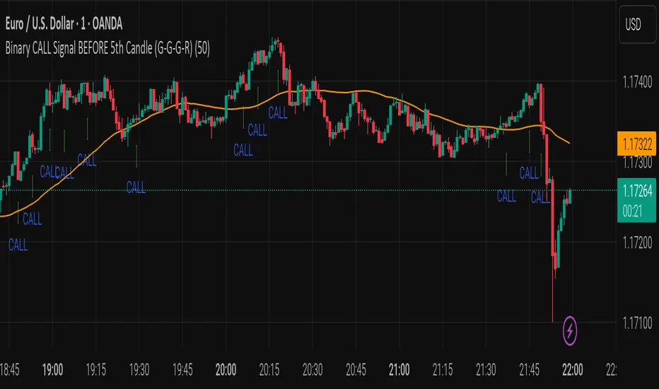 Binary CALL Signal BEFORE 5th Candle (G-G-G-R)