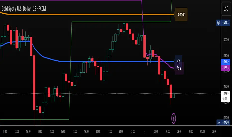 Multi-Session VWAP (NY, London, Asia) + HOD/LOD Bands
