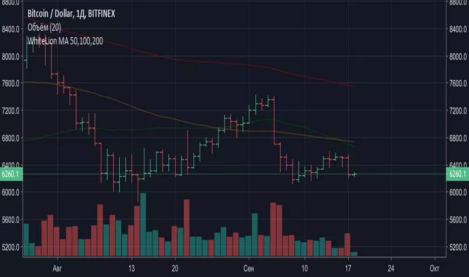 A single indicator that includes 50 (green), 100 (orange), and 200 (red) moving averages