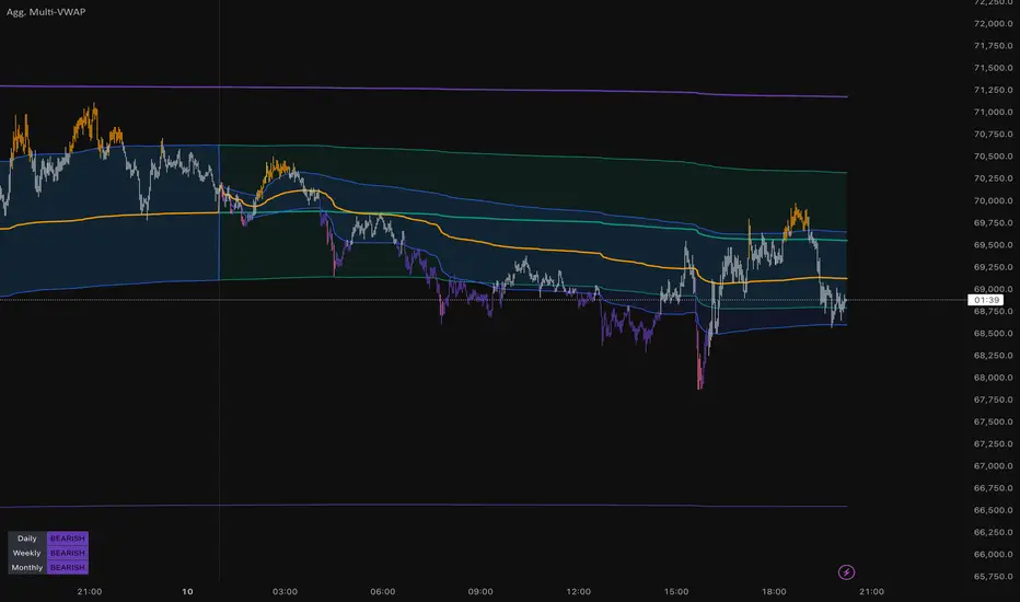 Please be aware that the accuracy of high-timeframe VWAPs (Monthly and Yearly) on lower-timeframe charts (like 1m or 5m) is subject to TradingView's bar limits.