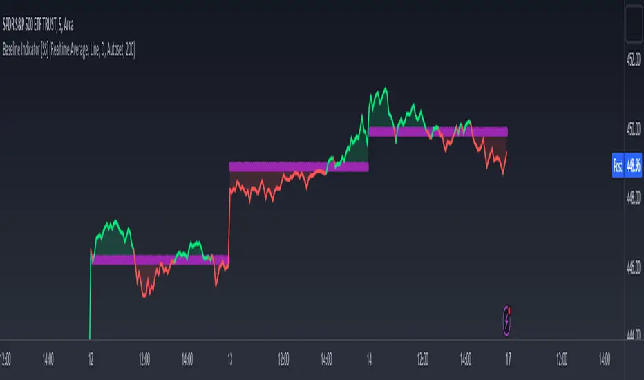 This is the Baseline Indicator. I modelled it after one of my favourite Tradingview chart types, the baseline type (shown in image below):