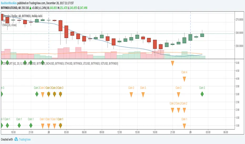Script to track specific CCI and EMA setups for a list of up to 5 user selectable altcoins (or any other instrument).